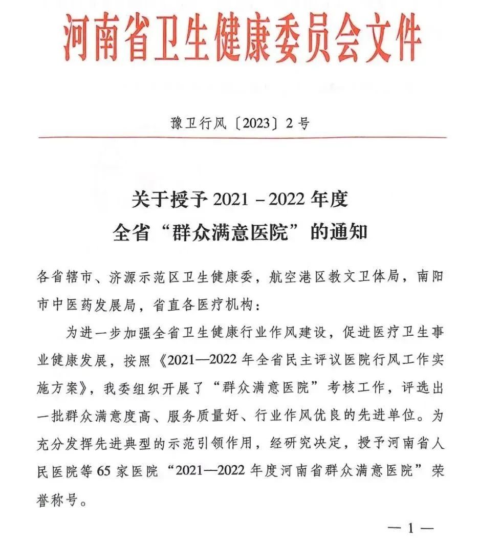 近日,全省衛(wèi)生健康系統(tǒng)黨風廉政建設暨清廉醫(yī)院創(chuàng)建工作會召開,會上,漯河市骨科醫(yī)院(漯河醫(yī)專第二附屬醫(yī)院)被授予“2021-2022”年度河南省群眾滿意醫(yī)院榮譽稱號。