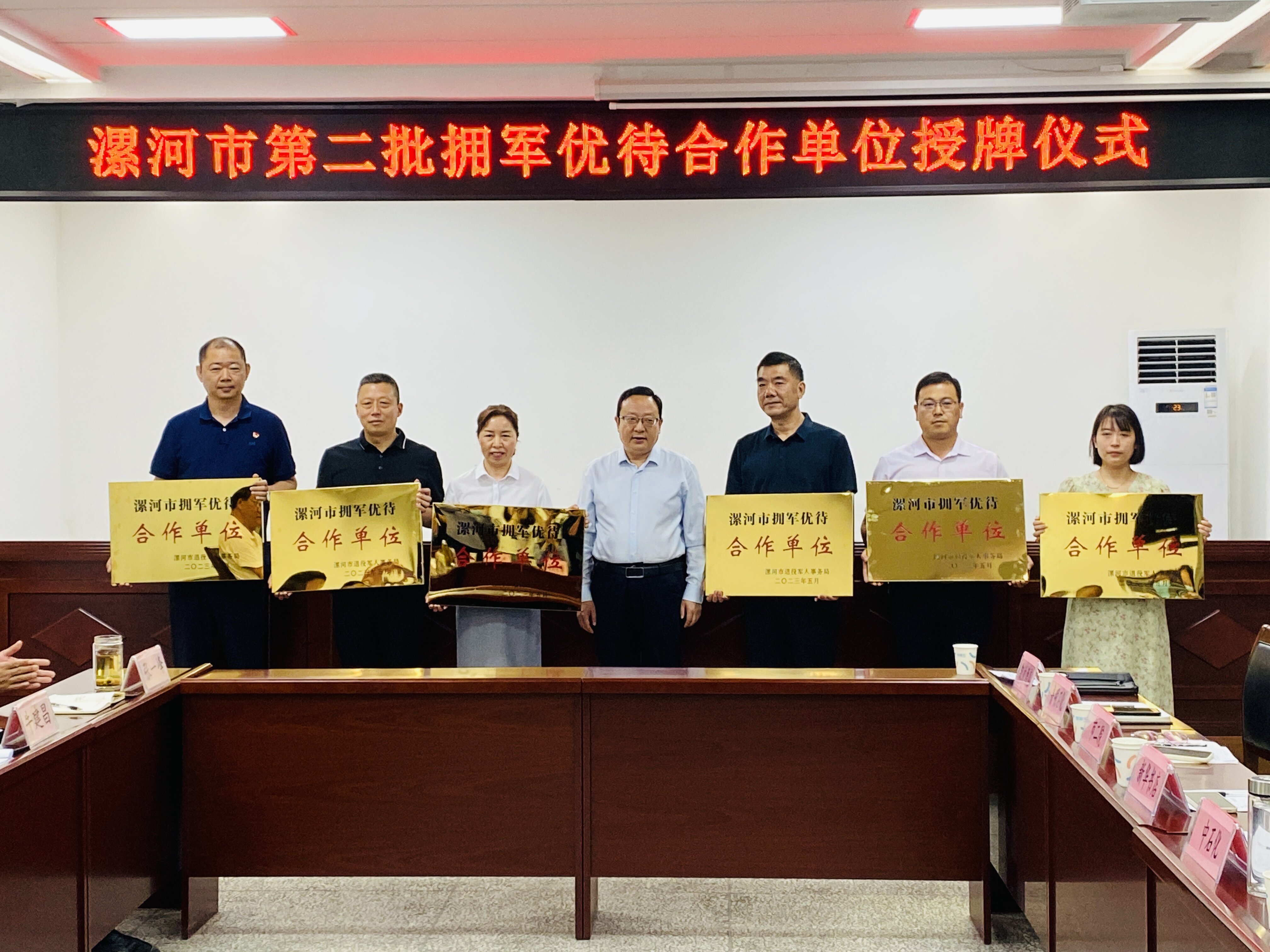 5月23日上午,“漯河市擁軍優(yōu)待合作單位”授牌儀式在市退役軍人事務(wù)局四樓會(huì)議室舉行。儀式上,市退役軍人事務(wù)局為市二院頒發(fā)了“漯河市擁軍優(yōu)待合作單位”牌匾,市二院相關(guān)負(fù)責(zé)人就落實(shí)退役軍人、現(xiàn)役軍人及其優(yōu)撫對(duì)象醫(yī)療優(yōu)待工作進(jìn)行表態(tài)發(fā)言。