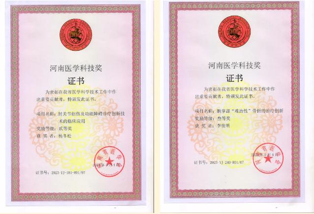 漯河市骨科醫(yī)院專家團隊再次榮獲河南省醫(yī)學(xué)科技獎