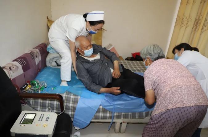 村民張全昌大爺因?yàn)榛歼^(guò)腦梗塞,常年坐輪椅,最近有點(diǎn)不舒服,想做個(gè)心電圖,漯河市骨科醫(yī)院(漯河醫(yī)專二附院)腫瘤內(nèi)科副主任醫(yī)師付暉專門了解了他的身體狀況,并進(jìn)行了詳細(xì)檢查。派駐第一書(shū)記將自己的床作為臨時(shí)檢查床為村民提供方便。張大爺?shù)睦习樘漳棠陶f(shuō),一直都想帶老人去市里去看看,但是老人活動(dòng)不方便,這次漯河醫(yī)專二附院的專家過(guò)來(lái)義診,還真的有這個(gè)項(xiàng)目,而且還免費(fèi),讓我們?cè)诩依锟床。兄x黨的好政策。
