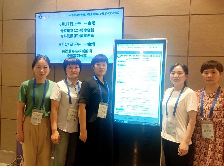 6月15—17日,中華護理學會全國骨科護理學術交流會議在湖北武漢召開。會上,漯河市骨科醫(yī)院(漯河醫(yī)專二附院)骨科護理團隊投稿論文22篇,受邀進行壁報展示4篇、交流18篇,護理部副主任趙春紅、骨五科護士長李慧、骨三科護士長趙翠梅、王瑩輝,骨二科護士長王瓊參會。