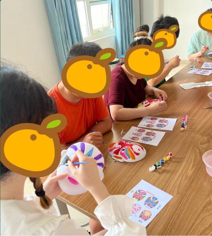 在了解了京劇基礎(chǔ)知識后,同伴們通過親手繪制京劇臉譜,進(jìn)一步感受國粹。拿起畫筆的同伴們仿佛成為了小小戲曲藝術(shù)家,全神貫注的勾劃線條、填涂顏色。