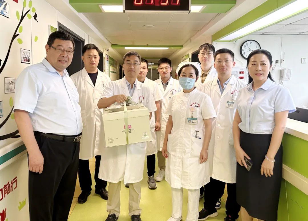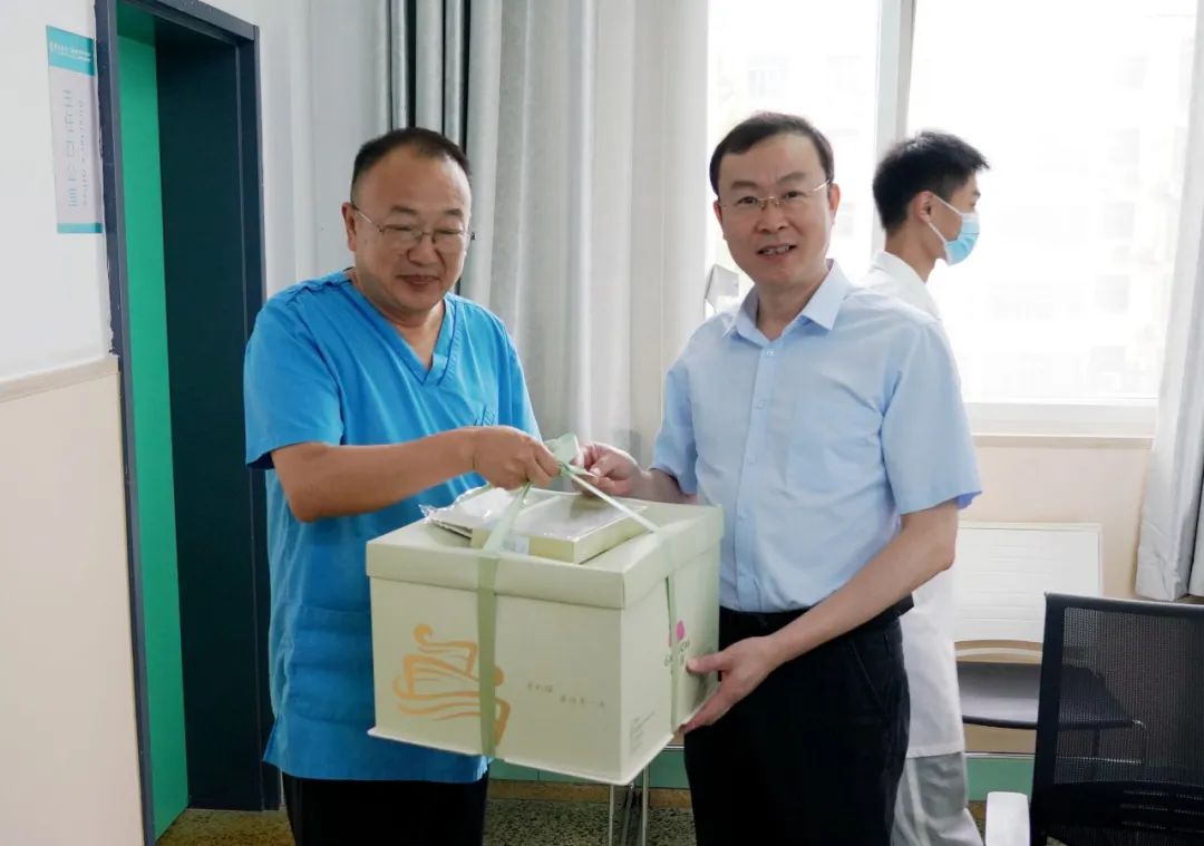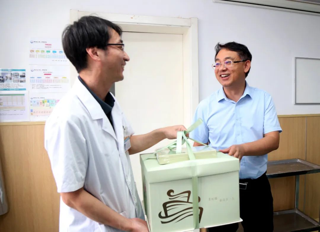 每到一處,院領導都將節(jié)日蛋糕和紀念筆送到醫(yī)師手中,并表示,希望廣大醫(yī)師要以人民健康為中心,始終堅守醫(yī)者仁心的職業(yè)信仰,不斷提高醫(yī)療水平和服務質量,為人民群眾提供更好的健康服務。作為醫(yī)務工作者,在關注患者生命健康的同時,也要注重自身健康,以強健的體魄、飽滿的精神,更好地投入到為人民健康而奉獻的偉大事業(yè)當中。