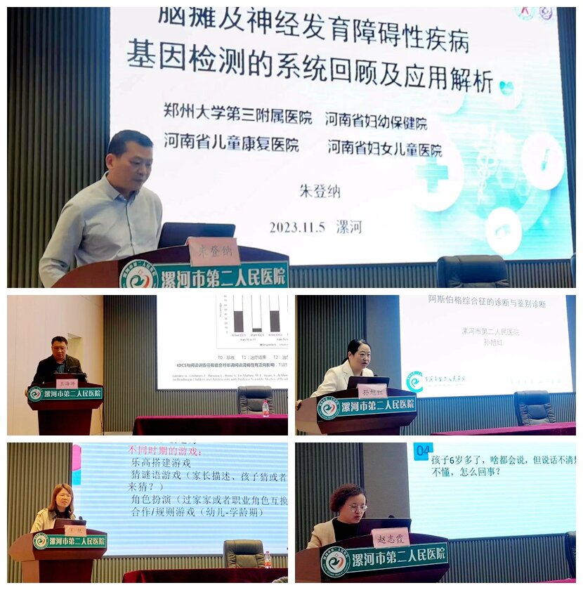 鄭州大學(xué)第三附屬醫(yī)院朱登納教授就《基因檢測(cè)的系統(tǒng)回顧及應(yīng)用解析》、市中心醫(yī)院康復(fù)醫(yī)學(xué)科主任王海濤全面闡述了《閱讀障礙的評(píng)估診斷和治療》、市二院副院長(zhǎng)郭長(zhǎng)根就《兒童重癥康復(fù)病人的管理》、市婦幼保健院兒童康復(fù)科主任趙志霞講授了《語(yǔ)言發(fā)育遲緩》、市二院兒童康復(fù)科副主任孫旭紅講授了《阿斯伯格綜合征的診斷與鑒別診斷》、市六院主管治療師王艷分享了《我們?nèi)绾闻愫⒆油嫫饋?lái)》。專(zhuān)家們圍繞相應(yīng)專(zhuān)題作了深入淺出的講解,從多方面、多維度為參會(huì)者帶來(lái)了一場(chǎng)高質(zhì)量的學(xué)術(shù)盛宴,為一線(xiàn)臨床醫(yī)師分享了寶貴的經(jīng)驗(yàn),使大家獲益良多。