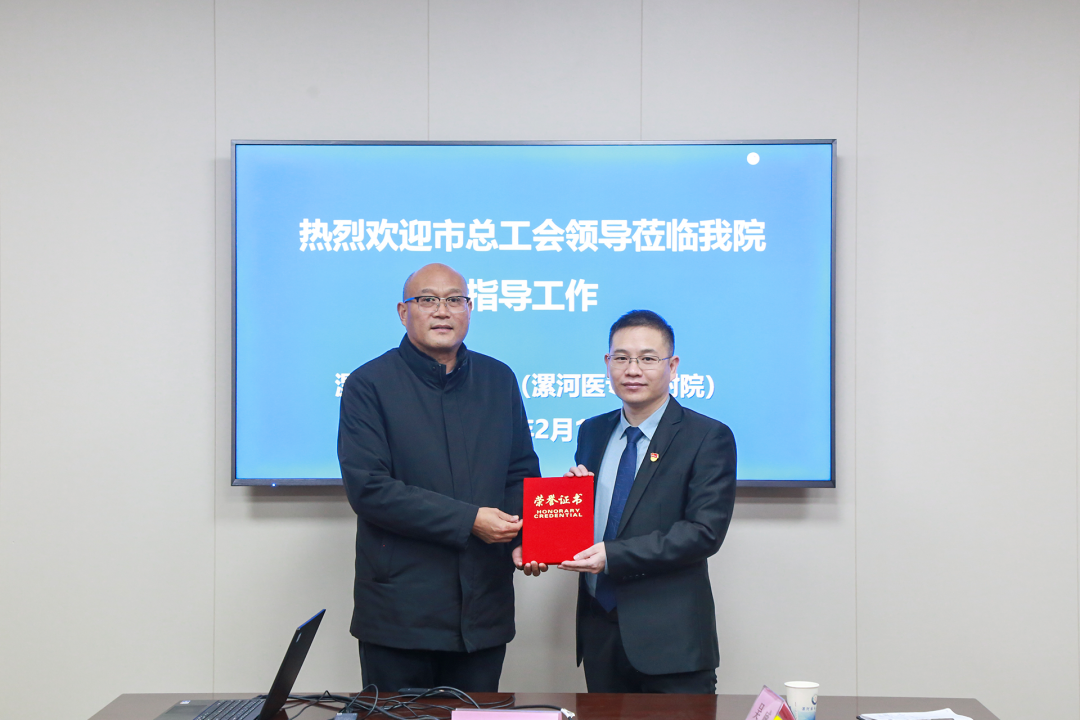 2月1日,漯河市總工會(huì)黨組成員、副主席張振凡,市總工會(huì)科教文衛(wèi)體工會(huì)主任谷賀衛(wèi)專程來院將榮譽(yù)證書送到陳小村和陳宏峰手中,勉勵(lì)他們立足本職、再接再厲,不斷提高道德水平和業(yè)務(wù)素質(zhì),為推動(dòng)我市衛(wèi)生事業(yè)全面深入發(fā)展作出新的更大貢獻(xiàn)。
