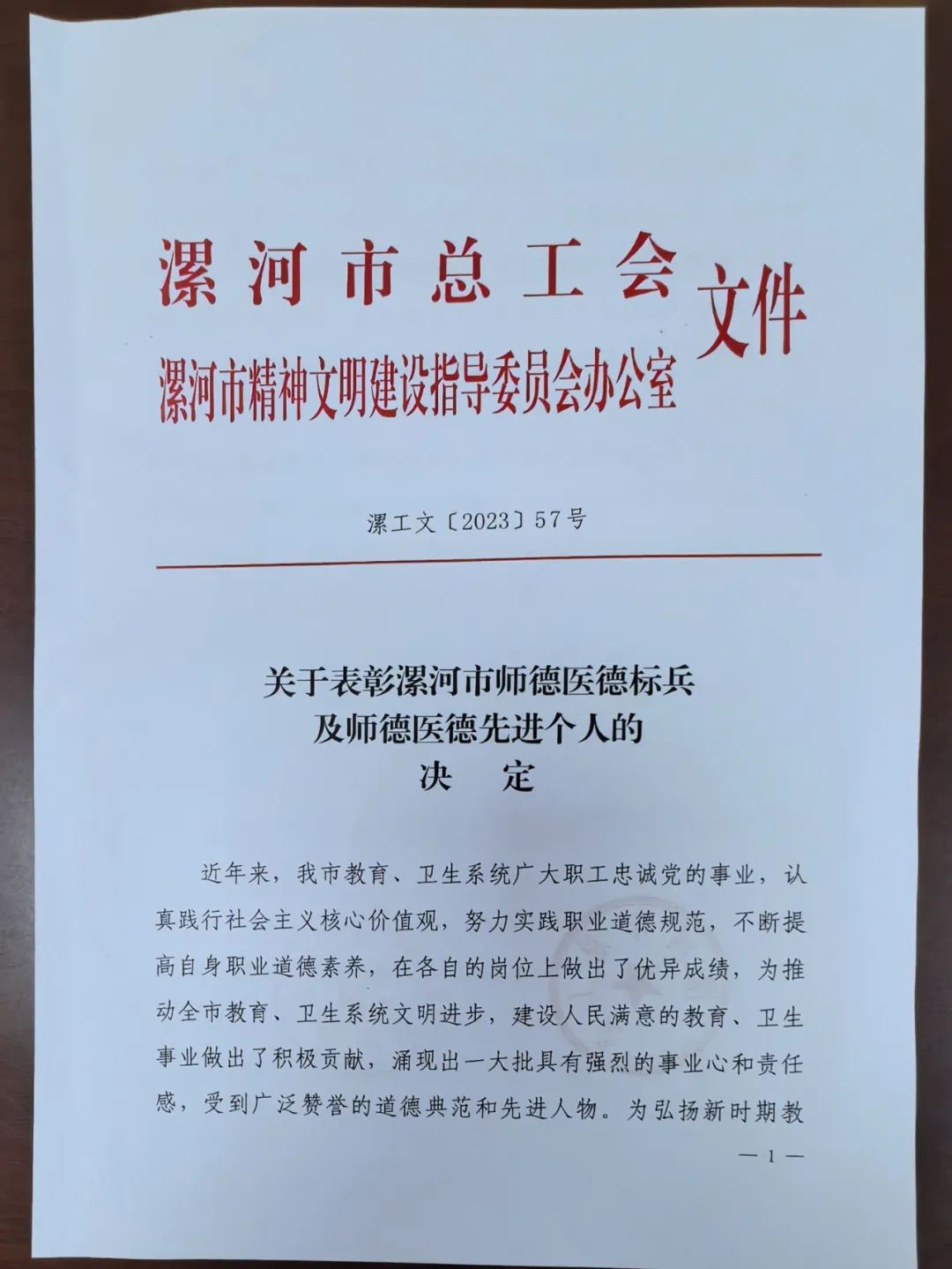 為推動(dòng)全市教育、衛(wèi)生系統(tǒng)文明進(jìn)步,建設(shè)人民滿意的教育、衛(wèi)生事業(yè),進(jìn)一步激勵(lì)教育、衛(wèi)生系統(tǒng)廣大職工不斷開創(chuàng)中國(guó)式現(xiàn)代化建設(shè)漯河實(shí)踐新局面努力奮斗,近日,漯河市總工會(huì)、漯河市精神文明建設(shè)指導(dǎo)委員會(huì)辦公室聯(lián)合發(fā)布了《關(guān)于表彰漯河市師德醫(yī)德標(biāo)兵及師德醫(yī)德先進(jìn)個(gè)人的決定》,漯河市骨科醫(yī)院(漯河醫(yī)專二附院、漯河市立醫(yī)院)耳鼻咽喉科主任陳小村獲得“漯河市醫(yī)德標(biāo)兵”榮譽(yù)稱號(hào),足踝外科主任陳宏峰獲得“漯河市醫(yī)德先進(jìn)個(gè)人”榮譽(yù)稱號(hào)。