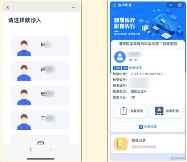 3、選擇就診人,無就診人需新增就診人,選擇就診人后進入影像列表,選取后進入檢查詳情頁