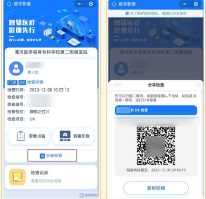 數(shù)字影像服務(wù)是指醫(yī)院在做X線、CT、磁共振檢查時,將原始生成的無損DICOM格式影像數(shù)據(jù)儲存在云服務(wù)器上,患者在做完影像檢查后,無需等待膠片打印,掃描報告單上的二維碼或者關(guān)注“健康漯河”公眾號查詢,檢查的原始影像數(shù)據(jù)和報告便可在手機、Pad、電腦等終端查看、下載、分享。