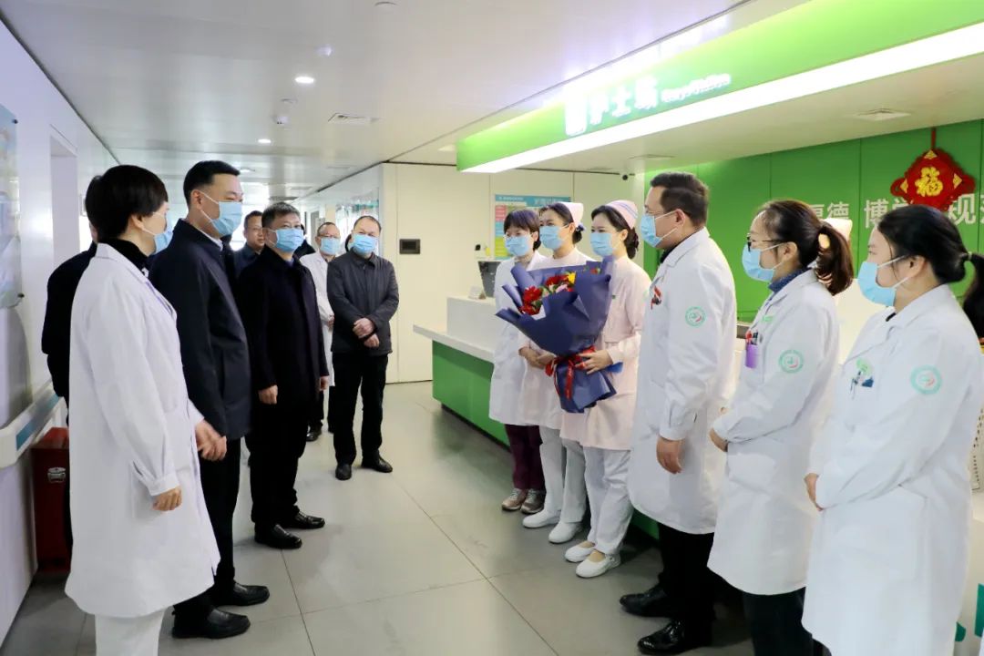 2月8日上午,新春佳節(jié)來(lái)臨之際,市衛(wèi)健委黨組成員、市紀(jì)委監(jiān)委派駐第二十一紀(jì)檢監(jiān)察組組長(zhǎng)朱黎明一行到市二院看望慰問(wèn)一線醫(yī)護(hù)人員,并送上節(jié)日的問(wèn)候。黨委書(shū)記魏松、院長(zhǎng)王瑾攜領(lǐng)導(dǎo)班子及相關(guān)職能部門(mén)負(fù)責(zé)人陪同慰問(wèn)。