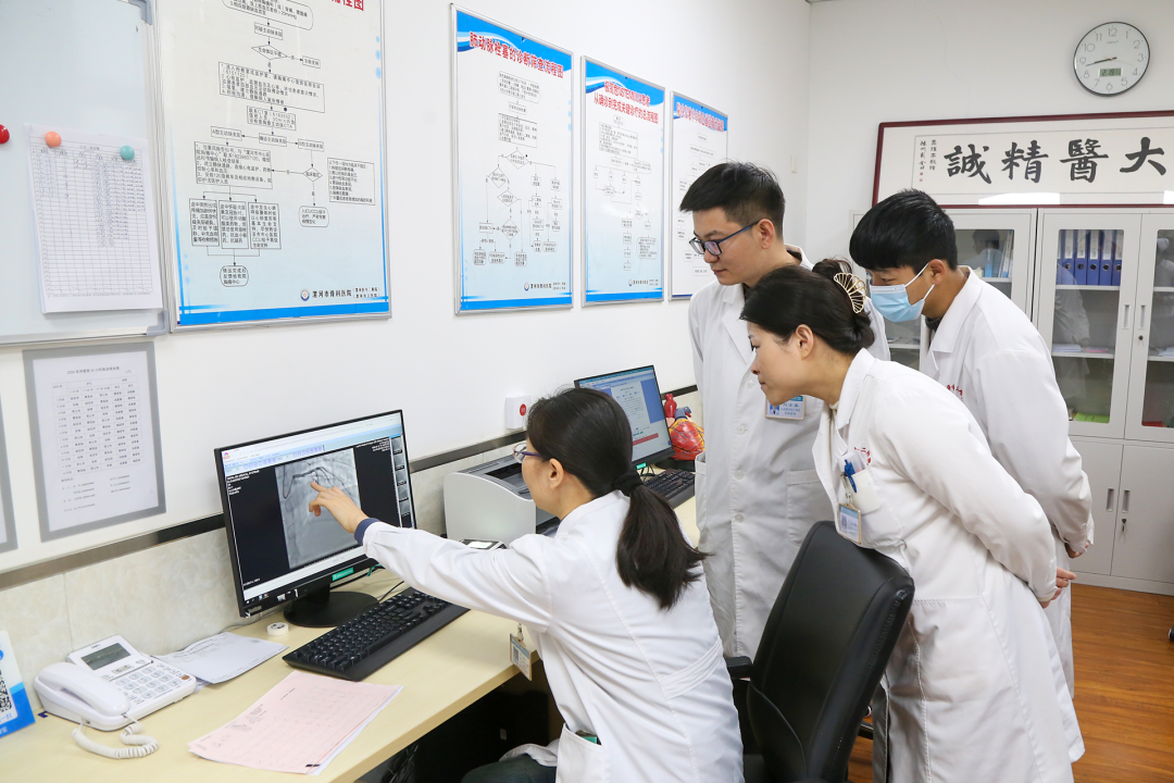 大年初五晚上,心血管內(nèi)科二病區(qū)堅守崗位的郭晨陽醫(yī)生共收治了7名患者,期間,他配合董艷彩主任,分別為一名31歲和一名38歲的年輕男性患者進行了急診手術(shù),他們的共同特點都是長期大量吸煙、熬夜。“消毒、穿刺、鞘管植入、導管到位……”10分鐘后,血管開通!這些生死競速的場景,在心內(nèi)科幾乎每一天都在上演。春節(jié)長假,當別人都在走親訪友歡度佳節(jié)時,心內(nèi)科的醫(yī)護人員卻穿著近10公斤重的鉛衣,站到手術(shù)臺前,與死神競速挽救患者生命。而他們所做的一切,只為讓急性心肌梗死的患者獲得新生,讓患者家庭獲得幸福感。