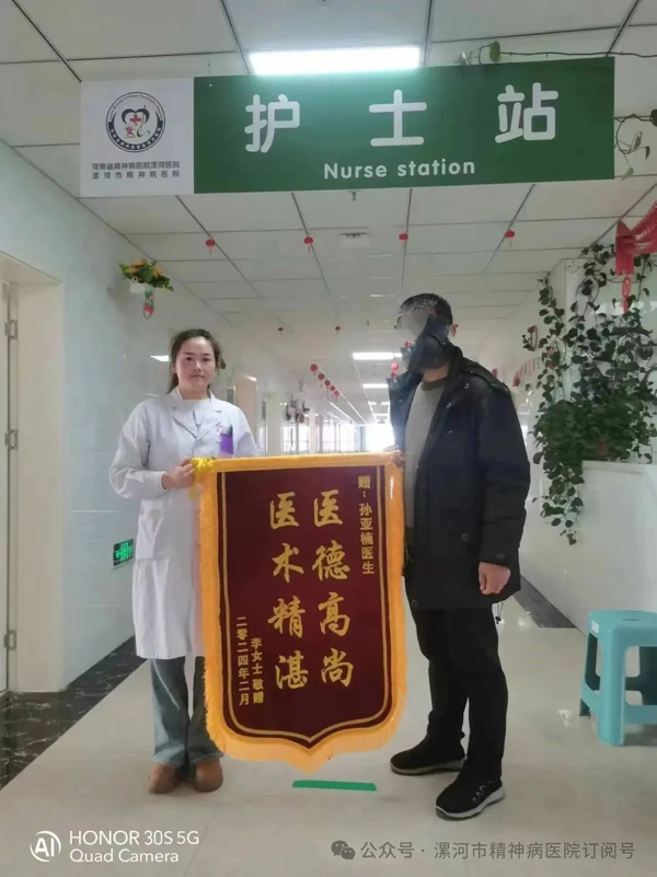 3月4日一大早,一名患者家屬懷著一顆無(wú)比感恩的心來(lái)到了漯河市精神病醫(yī)院精神四科,感謝我院孫亞南醫(yī)生及全體醫(yī)護(hù)人員,并送上一面錦旗,他的患者是一名在校學(xué)生,在家不出門(mén),不與人溝通,緊張、害怕,嚴(yán)重影響到日常生活,不能正常上學(xué),經(jīng)門(mén)診收住院,入院后,孫醫(yī)生耐心詢(xún)問(wèn)患者的病情,根據(jù)患者的癥狀進(jìn)行病情評(píng)估,制定了詳細(xì)的治療方案,通過(guò)一個(gè)多月的治療,患者癥狀明顯改善。能與人交流了,臉上也露出了久違的笑容。家屬對(duì)醫(yī)院的診療和服務(wù)水平非常滿(mǎn)意!