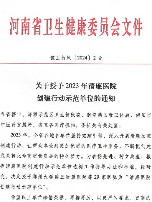 創(chuàng)建清廉醫(yī)院 守護(hù)人民健康——漯河醫(yī)專二附院被授予2023年省級清廉醫(yī)院創(chuàng)建行動示范單位