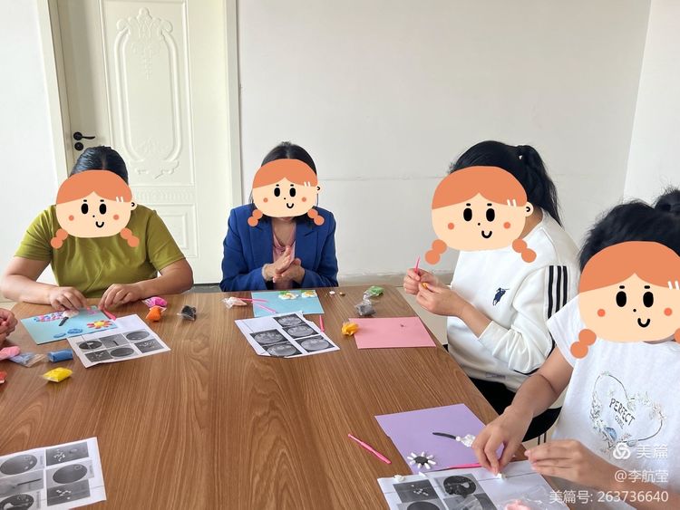 輔導(dǎo)員帶領(lǐng)同伴們一起完成關(guān)于“勞動最光榮”的主題粘土畫。