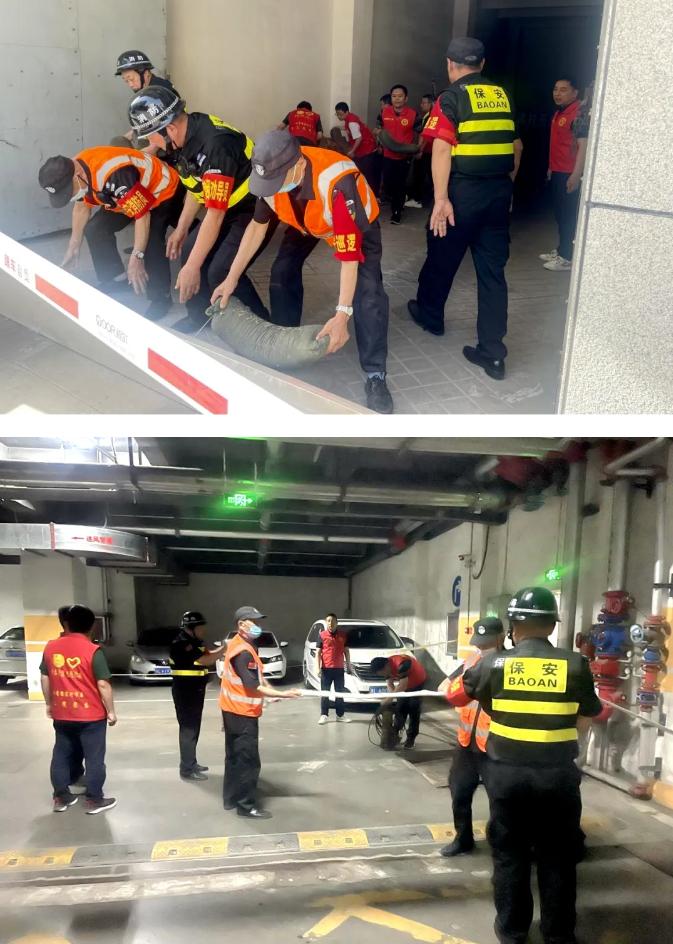 演練模擬漯河市區(qū)出現(xiàn)持續(xù)強(qiáng)降雨天氣,由于短時(shí)間降雨量過(guò)大,因管網(wǎng)排水不暢,造成雨水倒灌,致使地下車庫(kù)、配電間等重點(diǎn)地下空間區(qū)域進(jìn)水?,F(xiàn)場(chǎng)值班發(fā)現(xiàn)險(xiǎn)情,報(bào)告防汛總指揮,總指揮迅速啟動(dòng)防汛搶險(xiǎn)應(yīng)急預(yù)案,組織防汛搶險(xiǎn)預(yù)備隊(duì)進(jìn)行搶險(xiǎn),其他各組各司其職,同心協(xié)力處置險(xiǎn)情。