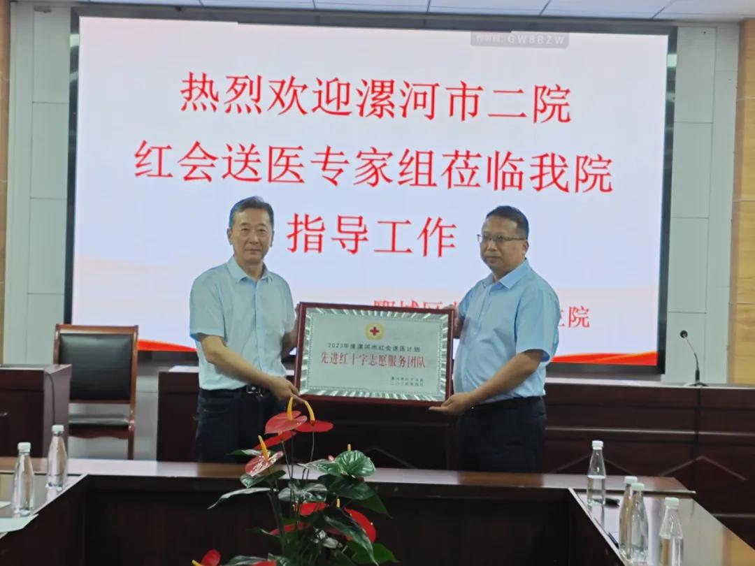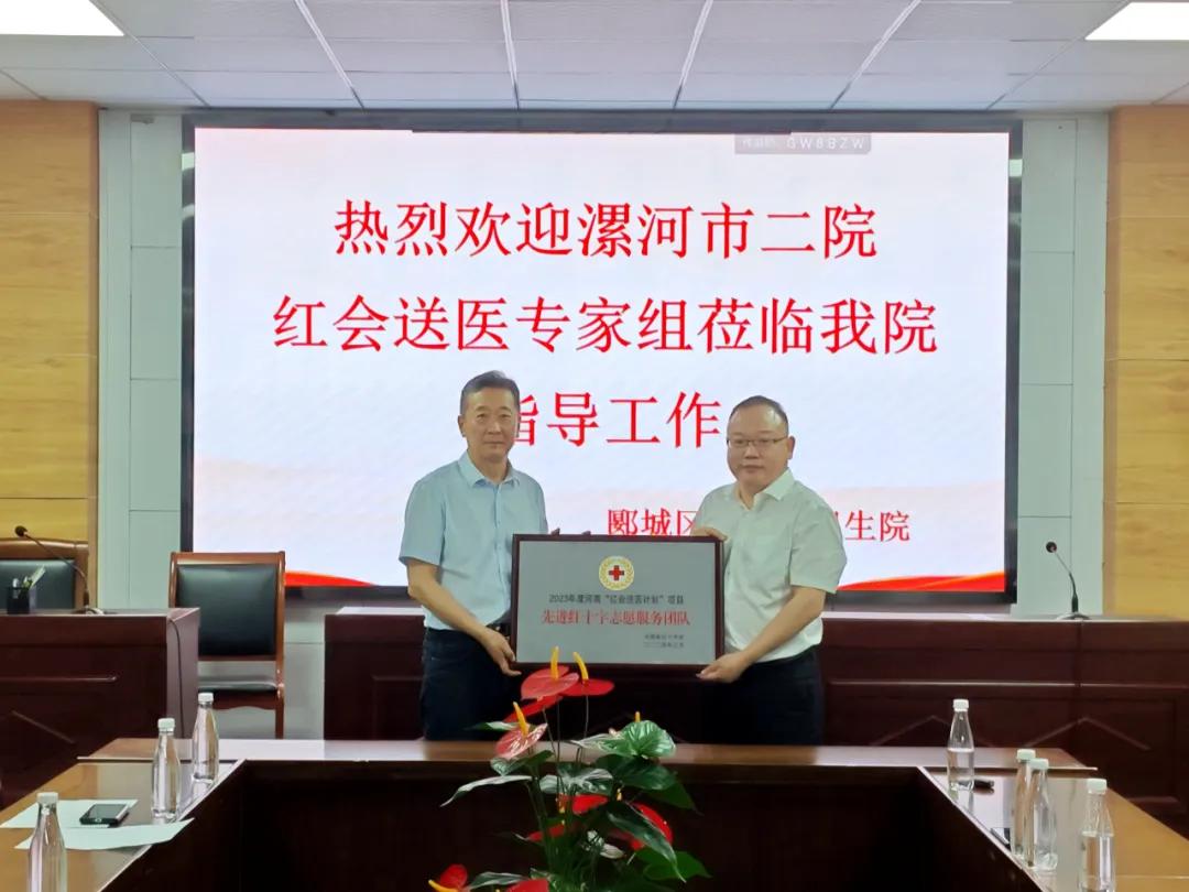 漯河市紅十字會黨組成員、副會長劉國防,市二院副院長張曉東,市二院工會主席李世學,郾城區(qū)紅十字會副會長李山峰,龍城鎮(zhèn)衛(wèi)生院相關負責同志出席了本次對接會議和義診活動。對接會上,市紅會副會長劉國防對市二院“紅會送醫(yī)計劃”所做的工作表示了高度的肯定,并向醫(yī)院頒發(fā)了2023年河南省“紅會送醫(yī)計劃”先進單位、2023年漯河市“紅會送醫(yī)計劃”先進單位兩塊獎牌,對市二院李慧新等7名同志獲得省級和市級“優(yōu)秀紅十字醫(yī)療專家志愿者”稱號表示祝賀。