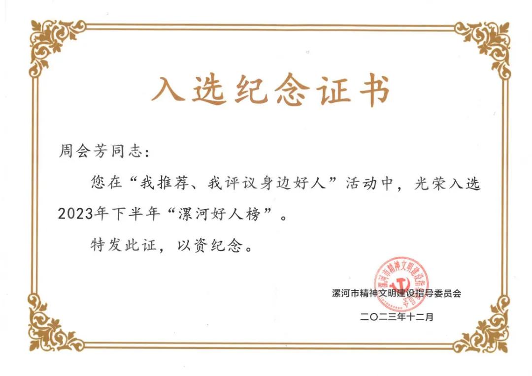 其中,來自漯河市骨科醫(yī)院(漯河醫(yī)專二附院、漯河市立醫(yī)院)的周會(huì)芳、徐景蓮光榮入選2023年下半年“漯河好人榜”!