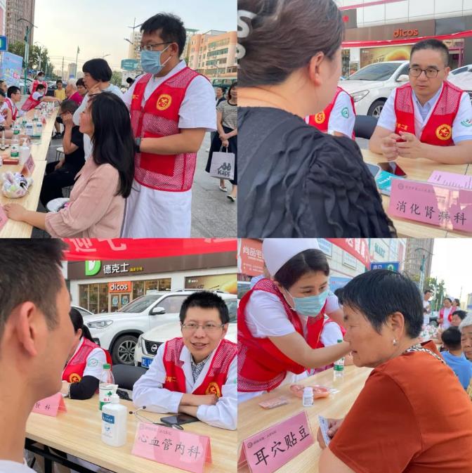現(xiàn)場氣氛熱烈,前來咨詢和問診的社區(qū)居民及路人絡(luò)繹不絕,市二院放療科、康復(fù)科、老年醫(yī)學(xué)科、心內(nèi)科、皮膚科、眼科、消化腎病科等20余名黨員志愿者們?yōu)榫用駛兲峁┟赓M測血壓、測血糖及健康咨詢;對他們提出的疑問進行耐心解答,并詳細(xì)詢問其身體狀況和既往病史,科普相關(guān)知識,積極引導(dǎo)大家科學(xué)就醫(yī)、合理用藥,宣傳倡導(dǎo)健康生活方式,增強自我保健意識。