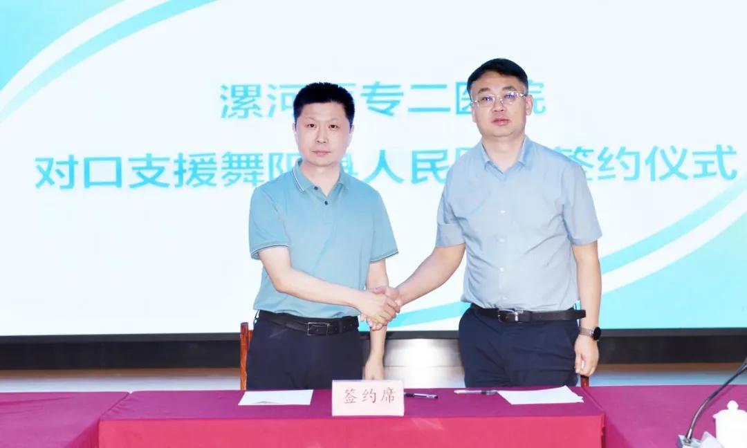 6月25日,漯河市骨科醫(yī)院對口支援舞陽縣人民醫(yī)院協(xié)議書簽訂儀式在舞陽縣人民醫(yī)院會議室舉行。漯河市骨科醫(yī)院黨委書記柴運洪、漯河市骨科醫(yī)院副院長鄭建新、舞陽縣衛(wèi)健委副主任朱迎民、舞陽縣衛(wèi)健委醫(yī)政股股長遠(yuǎn)彩月,舞陽縣人民醫(yī)院黨委書記、院長趙樂,全體對口支援醫(yī)師及受援科室主任出席儀式。