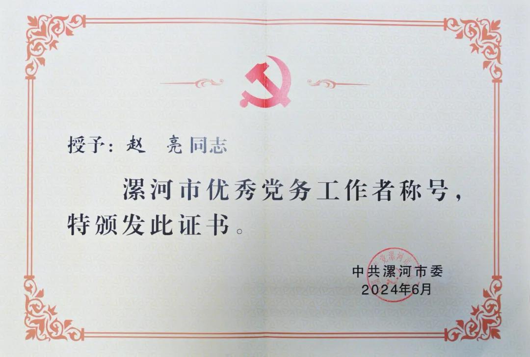 6月27日,全市“兩優(yōu)一先”表彰大會召開,市二院趙亮榮獲“漯河市優(yōu)秀黨務(wù)工作者”榮譽(yù)稱號。