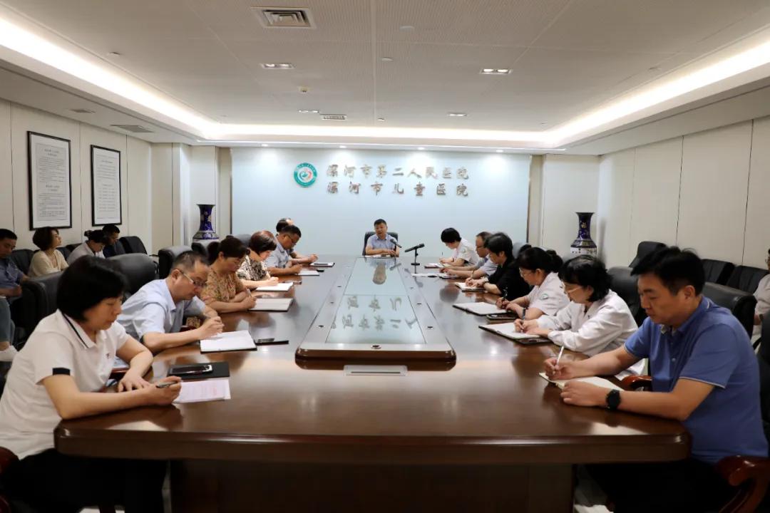 7月4日下午,市二院召開平安醫(yī)院建設(shè)工作會,黨委書記魏松、院長王瑾及班子成員,行管職能科長參加會議。