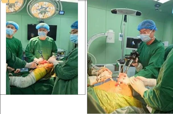 (李奎院長帶領(lǐng)智能微創(chuàng)骨科團隊進行手術(shù))