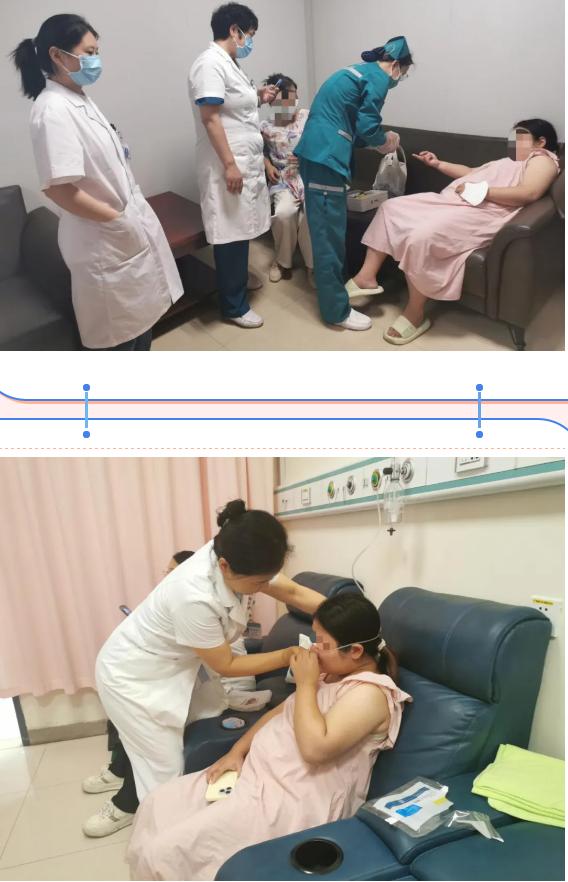 1分鐘后,婦產(chǎn)科張秀麗醫(yī)生迅速來到檢驗(yàn)科,2分鐘后,急診科的李想醫(yī)生、王靜護(hù)士推著平車,帶著急救設(shè)備也來到檢驗(yàn)科。他們爭分奪秒,分工合作,婦產(chǎn)科醫(yī)生查看孕婦及胎兒基本情況,急診科醫(yī)生、護(hù)士立即測量手指血糖、血壓等操作。隨后,大家快速的把患者轉(zhuǎn)移到婦產(chǎn)科門診胎心監(jiān)護(hù)室,立即進(jìn)行吸氧、胎心監(jiān)護(hù)等操作。
