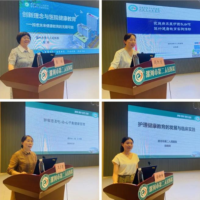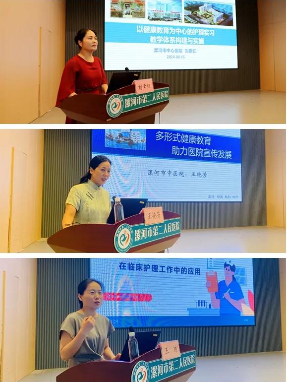學(xué)術(shù)交流會(huì)上,來自全市各級(jí)醫(yī)療機(jī)構(gòu)的護(hù)理健康教育專家們齊聚一堂,結(jié)合自身的實(shí)踐經(jīng)驗(yàn)和研究成果,共同探討護(hù)理健康教育的新理念、新方法、新技術(shù)。市中心醫(yī)院護(hù)理部副主任劉素紅講解了《以健康教育為中心的護(hù)理實(shí)習(xí)教學(xué)體系構(gòu)建與實(shí)施》,分享醫(yī)院在護(hù)理實(shí)習(xí)教學(xué)中以健康教育為中心開展帶教的亮點(diǎn)、實(shí)踐經(jīng)驗(yàn)和對(duì)未來的展望;市中醫(yī)院呼吸消化科護(hù)士長(zhǎng)王艷芳講解了《多形式健康教育助力醫(yī)院宣傳發(fā)展》,分享醫(yī)院開展健康教育項(xiàng)目的具體實(shí)施和取得的成效;市醫(yī)專二附院中醫(yī)骨傷科護(hù)士長(zhǎng)王瓊講解了《健康宣教在臨床護(hù)理工作中的應(yīng)用》,通過了解健康教育的方式方法談到如何把健康教育落到實(shí)處;市六院護(hù)理部副主任崔臻講解了《創(chuàng)新理念與健康教育》,通過對(duì)傳統(tǒng)健康教育模式的反思談到創(chuàng)新理念在健康教育中的應(yīng)用;市二院護(hù)理部主任高凱霞講解了《家庭病床醫(yī)護(hù)團(tuán)隊(duì)如何進(jìn)行健康教育實(shí)踐活動(dòng)》,通過案例展示如何開展健康教育;市二院普外科護(hù)士長(zhǎng)王書霞、神經(jīng)內(nèi)科護(hù)士長(zhǎng)徐曉爽分別講解了《腫瘤患者吃-動(dòng)-心平衡健康管理》《護(hù)理健康教育的發(fā)展與臨床實(shí)踐》,運(yùn)用實(shí)例、典故等強(qiáng)調(diào)健康教育的必要性和重要性,展示了臨床工作中取得的成果。