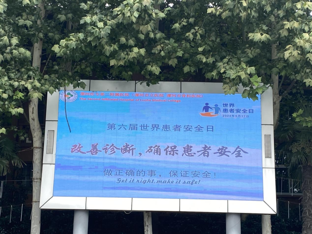 在院內(nèi)利用宣傳展板、LED屏等形式進(jìn)行患者安全日宣傳,營造積極向上的患者安全文化,鼓勵(lì)患者參與患者安全及自身的護(hù)理,提高患者、家屬和照護(hù)人員的參與度,強(qiáng)化醫(yī)院全員對(duì)患者安全的重視程度,不斷提升醫(yī)療質(zhì)量和患者安全管理水平,促進(jìn)醫(yī)院護(hù)患共同重視患者安全,減少意外傷害。