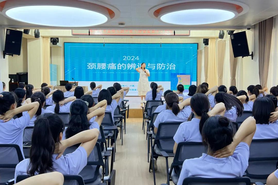 培訓(xùn)現(xiàn)場,市中醫(yī)院宣講團(tuán)成員康復(fù)科副主任盧鑫用通俗易懂的語言,通過PPT,圖文并茂、深入淺出地從頸椎病的類型、癥狀、中醫(yī)治療和預(yù)防等方面做了詳細(xì)的講解,讓大家了解在日常生活中如何預(yù)防頸椎病和需要注意的事項。同時囑咐大家在課間休息時一定要外出活動一下肢體。