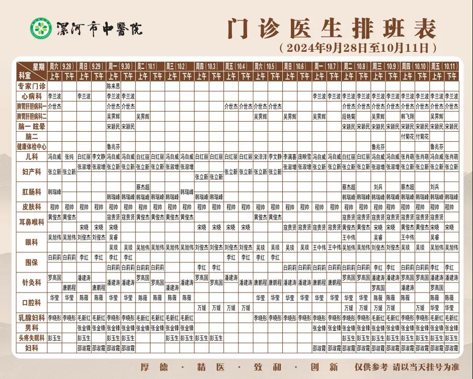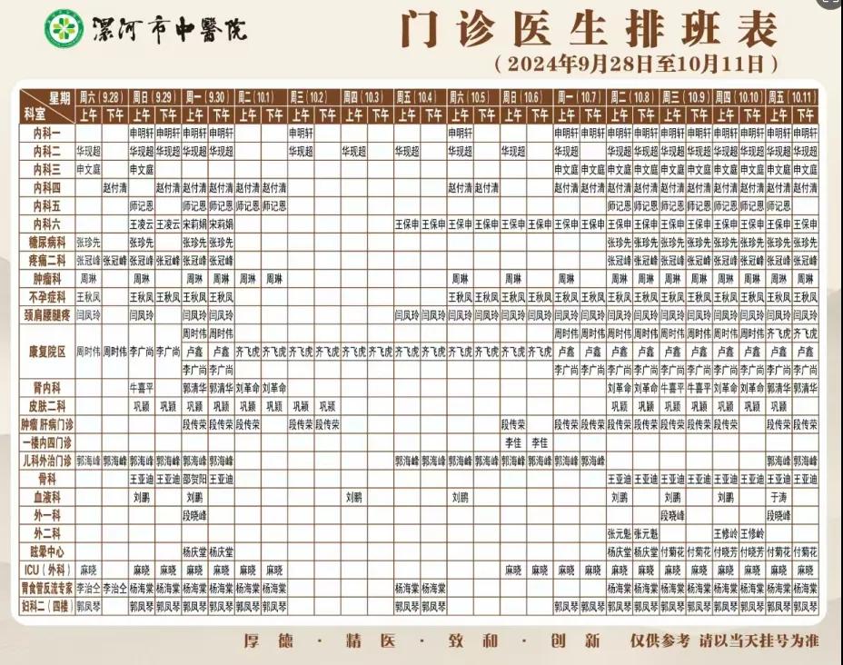漯河市中醫(yī)院國(guó)慶節(jié)期間門(mén)診醫(yī)生排班和就醫(yī)指南來(lái)啦~