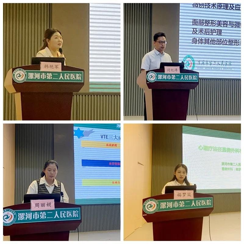 市二院顯微外科護(hù)士長(zhǎng)韓艷軍講解了《顯微外科、手外科護(hù)理發(fā)展介紹,專業(yè)領(lǐng)域拓展視頻分享》,對(duì)顯微外科學(xué)發(fā)展史、科普離斷肢體的保存方法、術(shù)后護(hù)理的重要性等進(jìn)行了介紹。顯微外科副主任醫(yī)師閆記濤講解了《醫(yī)學(xué)整形與微創(chuàng)技術(shù)》,通過細(xì)化兩者的關(guān)系,使大家了解了顯微外科學(xué)的更多可能性。顯微外科主管護(hù)師周麗娟、楊夢(mèng)姣分別講解了《VTE預(yù)防的健康教育》《心理療法在顯微外科學(xué)疾病中的應(yīng)用》,運(yùn)用實(shí)例、典故等強(qiáng)調(diào)VTE的預(yù)防及心理護(hù)理的重要性,展示了在臨床工作中如何運(yùn)用方法為患者帶來更優(yōu)質(zhì)的服務(wù)。