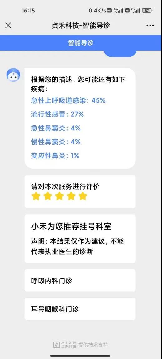 智能導(dǎo)診系統(tǒng)是通過多輪人機(jī)對話,根據(jù)患者對癥狀的描述了解患者病情,判斷患者所患疾病概率,自動為患者推薦最合適的掛號科室,并展示相應(yīng)的醫(yī)療信息,解決患者盲目就醫(yī)問題,有效提升患者就醫(yī)體驗(yàn),緩解醫(yī)院導(dǎo)診咨詢壓力,推動精準(zhǔn)就醫(yī)服務(wù)。