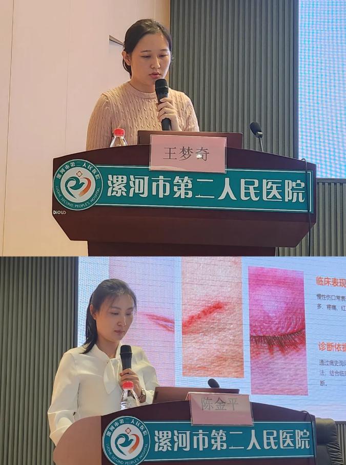 在學(xué)術(shù)交流環(huán)節(jié),上海交通大學(xué)醫(yī)學(xué)院附屬仁濟(jì)醫(yī)院皮膚科主任鞠強(qiáng)教授作了《玫瑰痤瘡的診斷和鑒別診斷》專題講座,鄭大一附院皮膚科主任尹光文教授講解了《紅斑狼瘡的皮膚表現(xiàn)》,河南省人民醫(yī)院皮膚科主任李雪莉教授就《光電聯(lián)合注射在面部年輕化的應(yīng)用》進(jìn)行分享,市二院皮膚科王夢奇對(duì)《臨床病例分享》進(jìn)行解讀,二院皮膚科陳金平就《慢性傷口不愈合的常見情況與處理》等為題進(jìn)行了分享交流,全面、系統(tǒng)地介紹了當(dāng)前皮膚病、激光美容等領(lǐng)域的研究現(xiàn)狀與進(jìn)展。