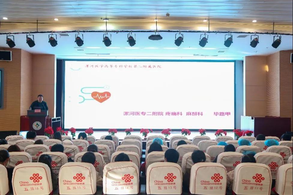 麻醉科主任畢路甲的授課題目是《疼痛的規(guī)范化藥物治療》,從疼痛的治療原則、方法以及常用藥物的適應癥、注意事項和禁忌癥等方面進行分享。同時,也指出了臨床使用中的常見誤區(qū),不提倡將哌替啶用于癌癥鎮(zhèn)痛治療等。提高了醫(yī)護人員對疼痛治療的認識和臨床應用能力。