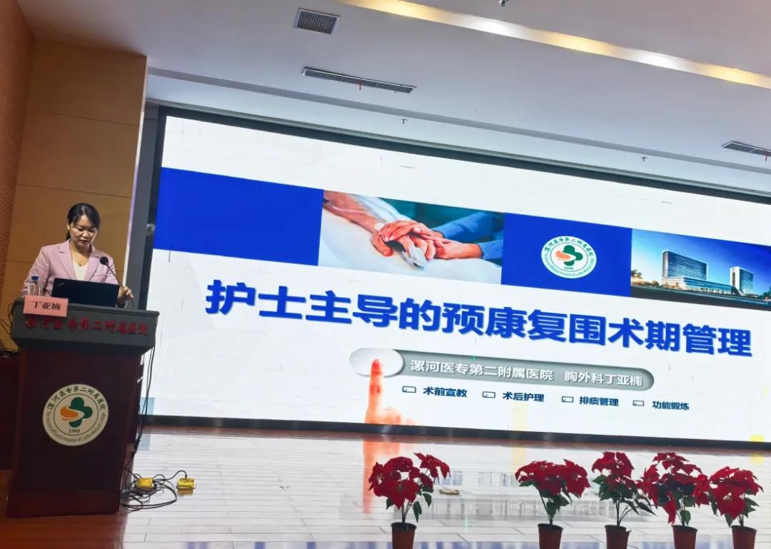 漯河醫(yī)專二附院胸外科護士長丁亞楠分享了《護士主導(dǎo)的預(yù)康復(fù)圍術(shù)期管理》的經(jīng)驗與心得。她強調(diào)了護士在預(yù)康復(fù)階段的重要作用,并分享了如何在圍術(shù)期管理中實施精準(zhǔn)護理、提高患者康復(fù)效果的實踐經(jīng)驗。