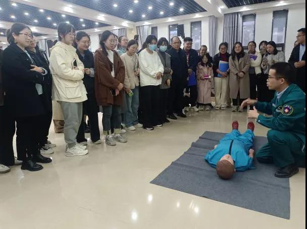 為增強居民健康保健知識及急救技能,提高胸痛患者區(qū)域協(xié)同救治能力,提升醫(yī)院胸痛中心建設內(nèi)涵,11月12日下午,我院社會工作部主任韓書環(huán)、心內(nèi)二病區(qū)副主任馬彥輝、急診重癥監(jiān)護病房主治醫(yī)師徐少奇應邀到許慎高級中學,對該校100余名教職工開展冠心病健康知識講座、心肺復蘇技能培訓。