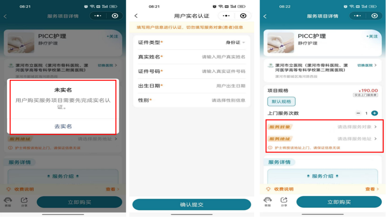 3.購(gòu)買(mǎi)之后需實(shí)名認(rèn)證,請(qǐng)正確填寫(xiě)各項(xiàng)信息,服務(wù)對(duì)象填寫(xiě)的是需要被護(hù)理的患者,地址填寫(xiě)準(zhǔn)確。