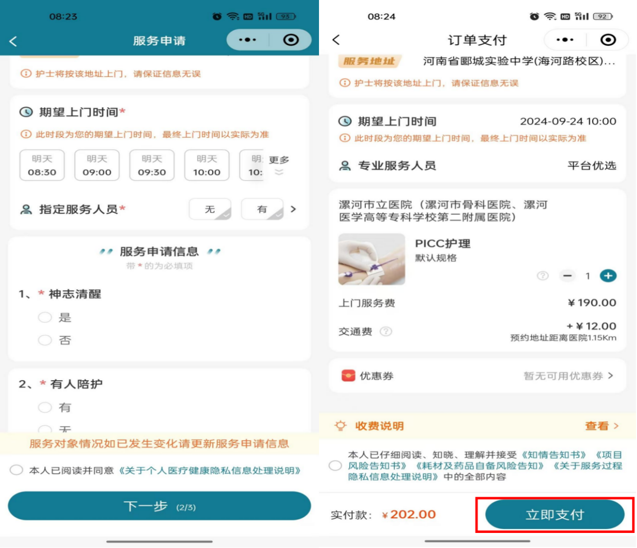 4.各項(xiàng)信息填寫(xiě)后,支付訂單,護(hù)士接單后會(huì)與下單人電話聯(lián)系再次確認(rèn)。