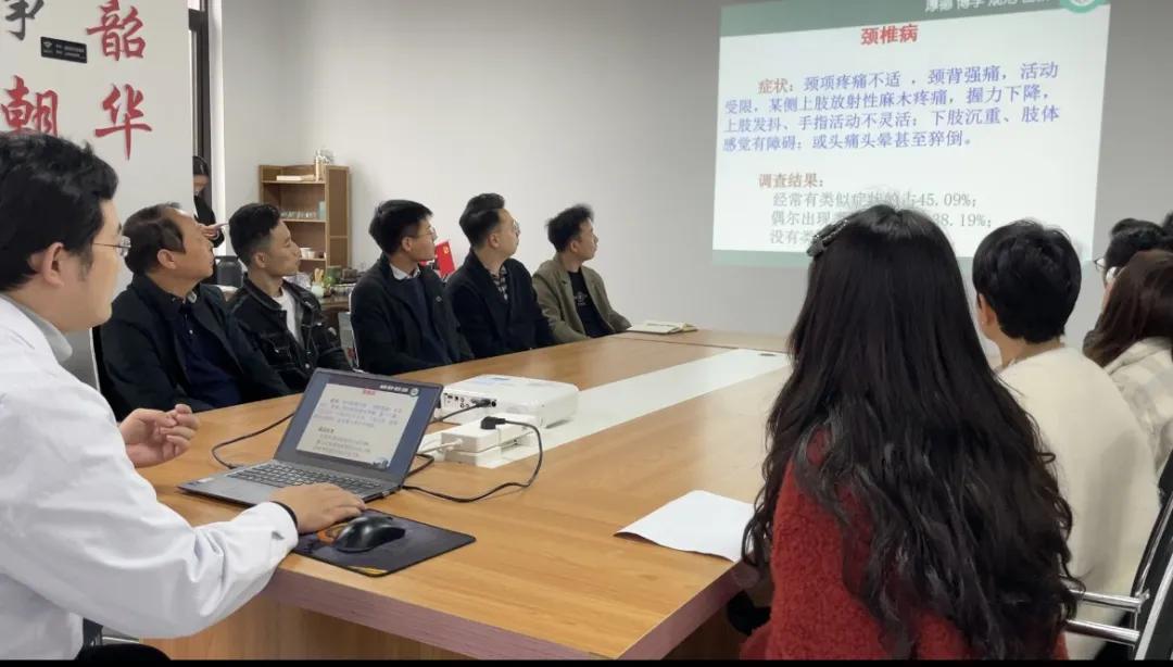 在同步進(jìn)行的健康科普進(jìn)企業(yè)現(xiàn)場(chǎng),市二院中醫(yī)針灸科副主任趙劍鋒針對(duì)電商從業(yè)者長(zhǎng)期久坐的職業(yè)特點(diǎn),重點(diǎn)講解了頸椎病、腰椎病等疾病的預(yù)防和應(yīng)對(duì)方法,并從日常飲食、科學(xué)的鍛煉方法、緩解疲勞的小妙招、心理壓力的釋放途徑與參會(huì)人員進(jìn)行了分享。參會(huì)職工們跟隨講解邊聽(tīng)邊學(xué),現(xiàn)場(chǎng)氣氛熱烈,活動(dòng)效果超出預(yù)期。