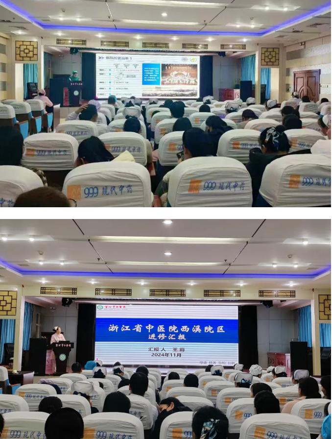 接著,急診科護士長段銳、兒童康復科護士長王莉10月份作為護士長進修的第三組赴浙江省中醫(yī)院進修學習。兩位從管理亮點、護理技術、文化建設、服務流程等方面進行了詳細匯報,并結合各自的專業(yè)特點和學習內(nèi)容,從自身實踐、學習收獲、未來發(fā)展等方面分享了學習成果。分享中的新知識、新技術和先進的理念,讓大家耳目一新,紛紛表示拓寬了工作思路,獲益匪淺。