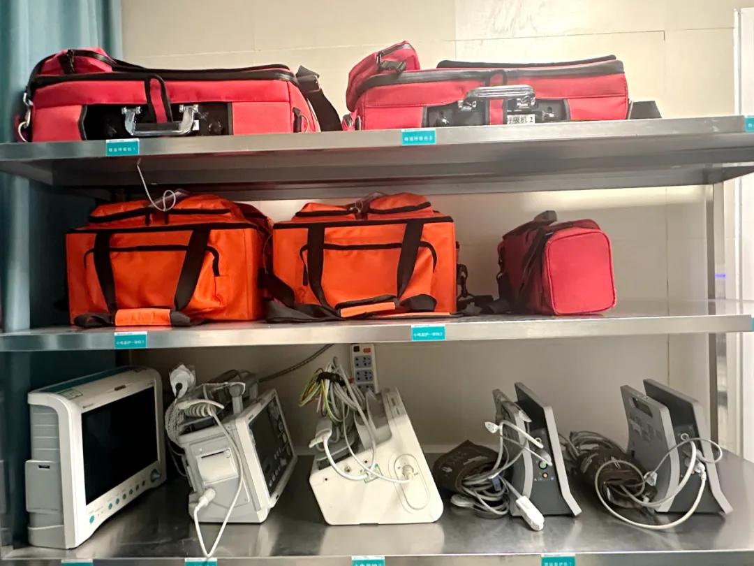 搶救中心配有先進的急救醫(yī)療設備:多功能搶救床、溶栓床、心電監(jiān)護儀、心電圖機、除顫儀、呼吸機、氣管插管包、可視喉鏡、洗胃機、電動吸引器等,極大地提升了急診科的急救能力。科室還擁有轉(zhuǎn)運監(jiān)護儀、轉(zhuǎn)運呼吸機、轉(zhuǎn)運心肺復蘇機、脊柱固定板、帶履帶的樓梯椅等先進的急救設備。急診醫(yī)學科有醫(yī)師11人,護理人員16人,司機6人,救護車6輛,建立了完善的急診急救體系。