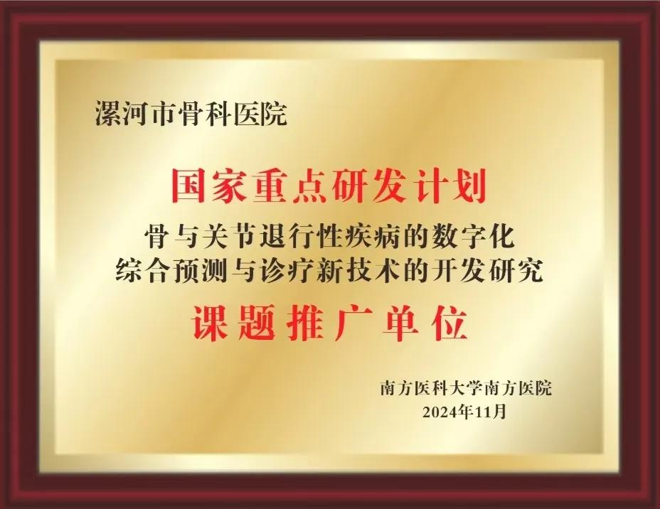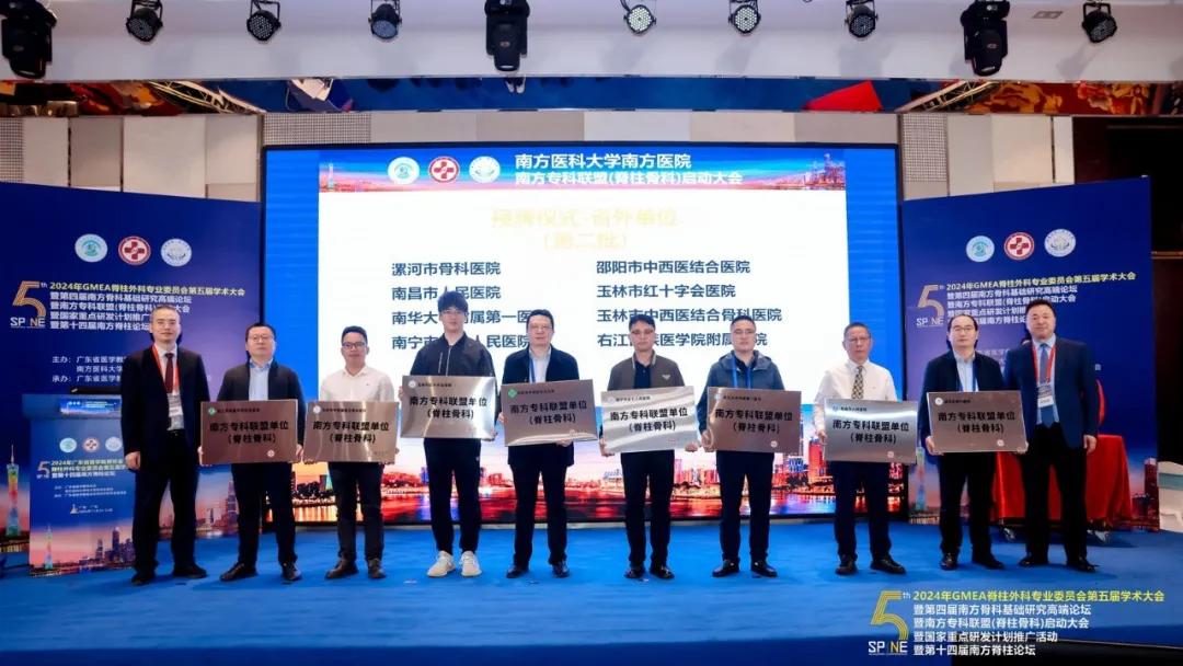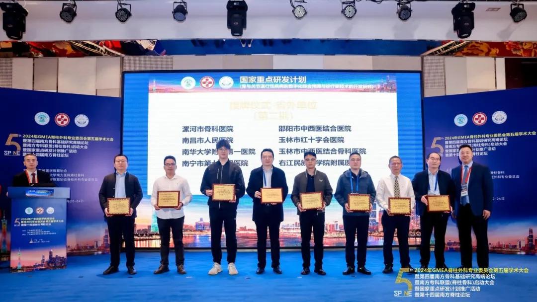 11月22日—24日,由廣東省醫(yī)學(xué)教育協(xié)會、南方醫(yī)科大學(xué)南方醫(yī)院脊柱骨科聯(lián)合主辦,廣東省醫(yī)學(xué)教育協(xié)會脊柱外科專業(yè)委員會承辦的“2024年GMEA脊柱外科專業(yè)委員會第五屆學(xué)術(shù)大會”在廣東廣州成功舉行。在南方??坡?lián)盟(脊柱骨科)啟動大會暨國家重點(diǎn)研發(fā)計劃推廣活動上,漯河市骨科醫(yī)院(漯河醫(yī)專二附院、漯河市立醫(yī)院)榮獲“國家重點(diǎn)研發(fā)計劃-骨與關(guān)節(jié)退行性疾病的數(shù)字化綜合預(yù)測與診療新技術(shù)的開發(fā)研究課題推廣單位”與“南方??坡?lián)盟單位(脊柱外科)”雙項授牌!