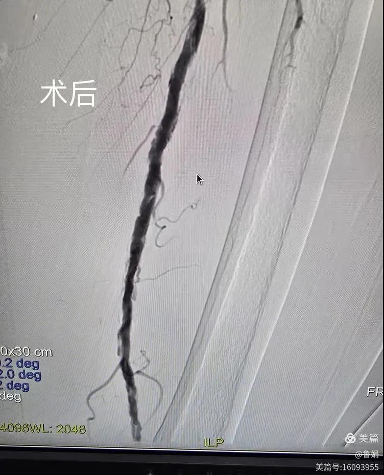 據(jù)悉,該患者,女,73歲,下肢動脈硬化閉塞癥,“以靜息痛,間歇性跛行”入院,CTA評估:股淺動脈,腘動脈間斷性多段重度狹窄,外二科血管外科團(tuán)隊(duì)根據(jù)患者病情,結(jié)合檢查結(jié)果,經(jīng)過科室會診后,決定對該病人行介入治療。手術(shù)由周創(chuàng)業(yè)副主任與北大一院血管外科專家郭宏杰教授聯(lián)合開展,對股淺動脈,腘動脈重度閉塞段行血管開通+藥涂球囊擴(kuò)張成形,術(shù)后狹窄明顯緩解,血流恢復(fù)!