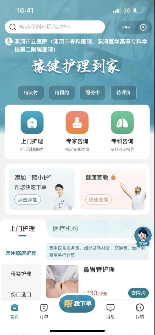 隨著社會老齡化加劇和慢性病患者的增多,居家護理需求日益增長。漯河醫(yī)專二附院(漯河市骨科醫(yī)院、漯河市立醫(yī)院)依托豫健護理到家平臺,用專業(yè)的醫(yī)療護理團隊和規(guī)范的服務流程,為行動不便、術后康復、老年病患等人群提供導尿、換藥、PICC維護、壓瘡護理等多項上門服務,讓患者在家也能享受到安全、便捷的醫(yī)療護理。護理零距離,關愛無止境!豫健護理到家將繼續(xù)用專業(yè)和溫暖守護每一位患者的健康,讓醫(yī)療護理服務更貼心、更人性化!  (盧   闖  劉   丹   于揚波  劉   旭   袁錦鈺)