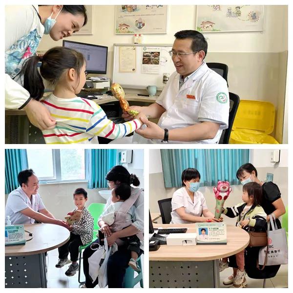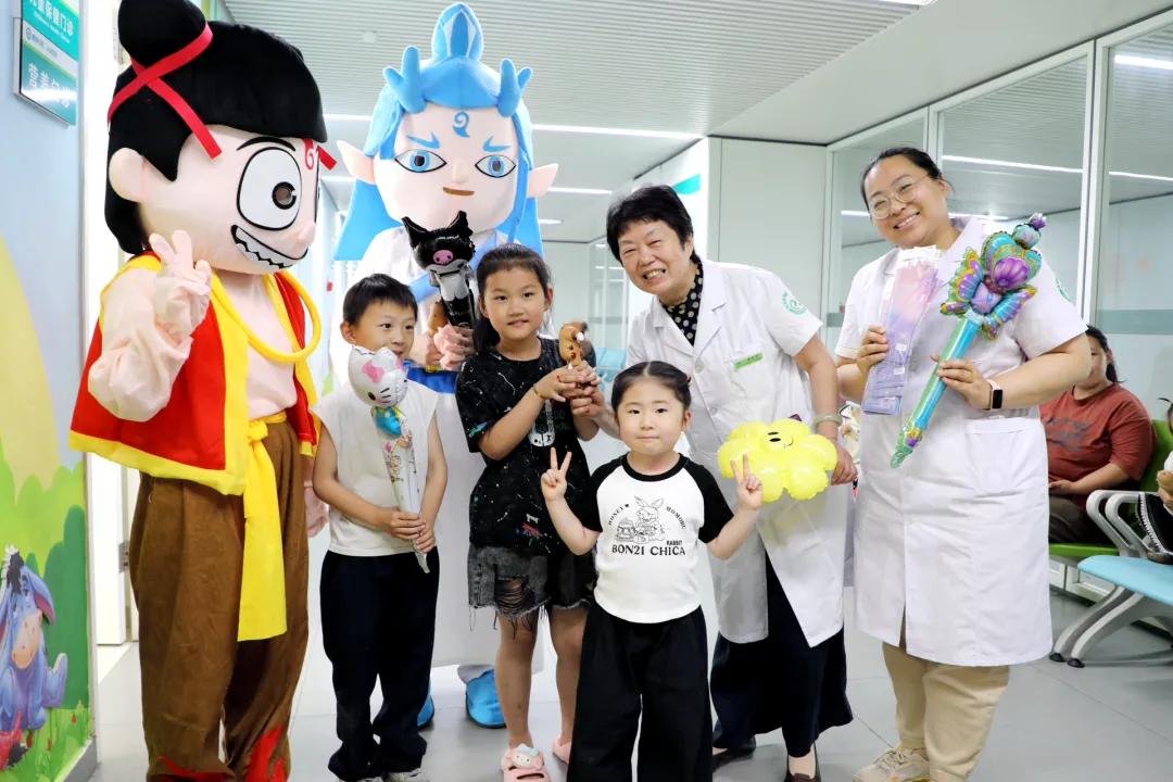 門診大廳化身兒童樂園,醫(yī)護(hù)人員化身哪吒、敖丙、花仙子等諸多可愛的卡通人物與小朋友們熱情互動,友好交流,派發(fā)精心準(zhǔn)備的節(jié)日禮物。市二院黨委書記魏松,黨委副書記、院長胡海英攜班子成員及兒科專家、醫(yī)護(hù)團(tuán)隊為小朋友們送上暖心的節(jié)日禮物與祝福,與孩子們共度“六一”。