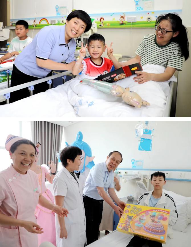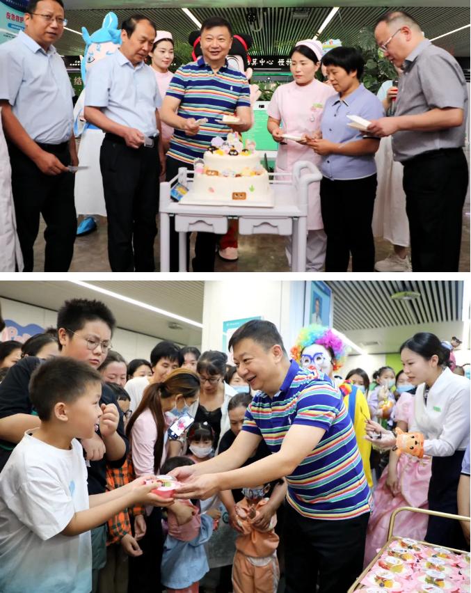 在孩子們期待的目光中,黨委書記魏松、院長胡海英攜班子成員和兒科專家們?yōu)楹⒆觽円黄鹎邢虏⒎窒砉?jié)日蛋糕,“愿寶貝們心里有愛,眼里有光,永遠(yuǎn)做自己的小太陽!”真摯的祝福隨蛋糕甜香漫溢全場。