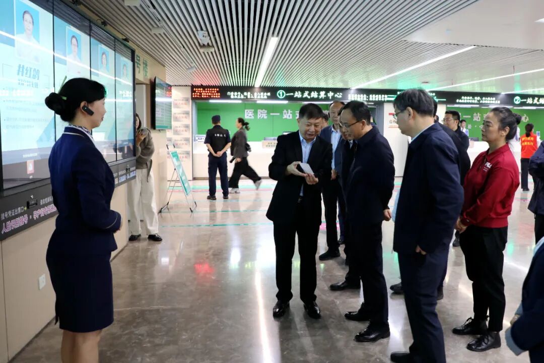 市人大趙耀嵩副主任一行首先聽取了市二院黨委書記魏松的工作匯報。魏松書記結(jié)合PPT內(nèi)容,圖文并茂介紹了醫(yī)院在優(yōu)化服務(wù)流程、檢驗結(jié)果互認、方便群眾就醫(yī)、醫(yī)?;鸨O(jiān)管、投訴端關(guān)口前移等方面的主要做法,表示醫(yī)院自開展集中整治活動開展以來,通過一系列舉措,實現(xiàn)了患者就醫(yī)多項業(yè)務(wù)“一次到位”,價格公開、服務(wù)可查、投訴可追,醫(yī)院就診人次明顯上升,患者醫(yī)療費用、群眾投訴顯著下降,群眾滿意度大幅提升。同時,市人大視察組一行實地觀摩了病人一站式服務(wù)中心、醫(yī)保一站式結(jié)算中心和人臉識別掛號系統(tǒng)。隨后,視察組一行來到二樓內(nèi)科門診,現(xiàn)場觀看了患者檢驗結(jié)果互認的操作流程。