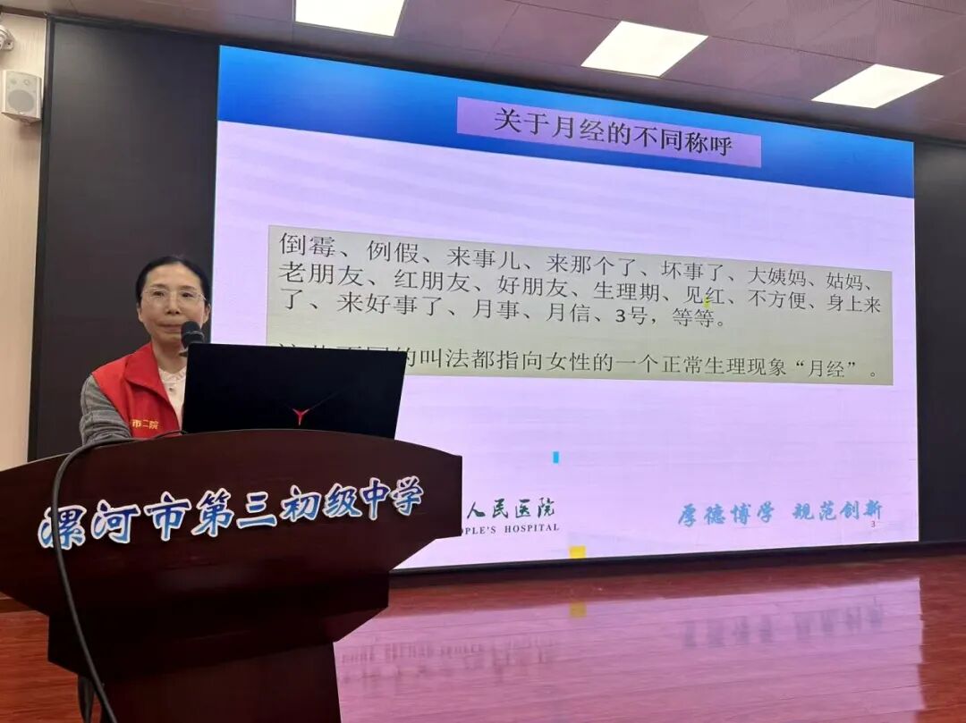 活動現(xiàn)場,婦產(chǎn)科主任井紅鴿從月經(jīng)的形成原理、周期變化,到日常護理的注意事項,用通俗易懂的語言,結(jié)合形象的圖示,讓女生們對自身的生理變化有了更深入地了解。特別強調(diào)了月經(jīng)是女性正常的生理現(xiàn)象,是成長過程中不可或缺的一部分,鼓勵女生們摒棄傳統(tǒng)觀念中的羞恥感,以積極的心態(tài)接納和面對。隨后,針對女生們在青春期可能遇到的生理和心理問題,醫(yī)護人員和志愿者們也給予了耐心地解答和專業(yè)的建議,得到了學校師生的一致好評。