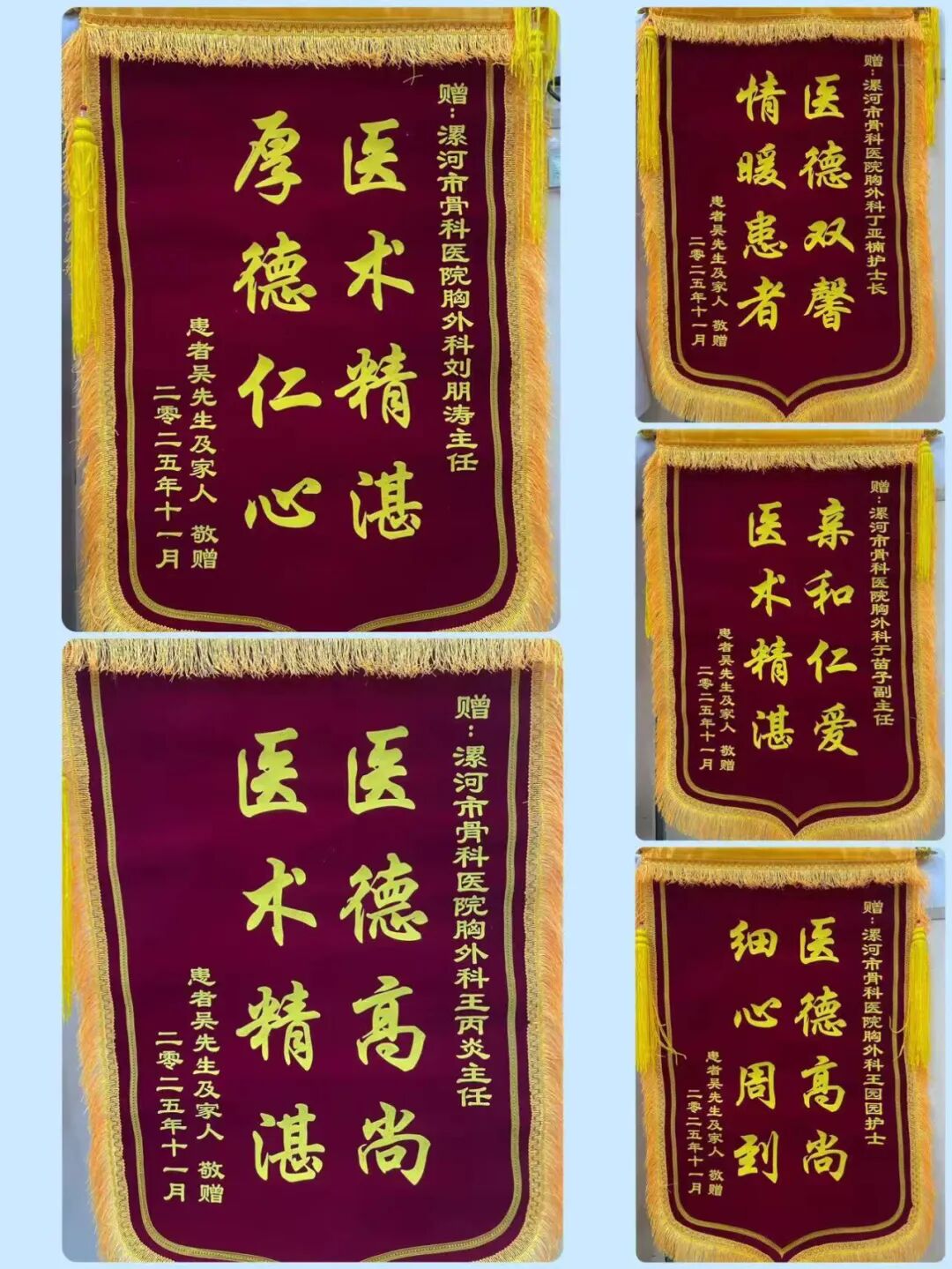 “每次來這里,都能感受到家人般的溫暖。”患者的話語樸實(shí)而真摯。他將多次診療中積累的感動(dòng),凝練成五面錦旗,分別贈(zèng)予科室主任、護(hù)士長、主管醫(yī)生、責(zé)任護(hù)士及全體醫(yī)護(hù)團(tuán)隊(duì)。他說,正是這份跨越多次診療的持續(xù)守護(hù),讓他有了堅(jiān)持下去的勇氣,這份情誼值得永遠(yuǎn)銘記。