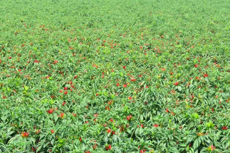 你看看:榮莉萊的辣椒直播大田表現(xiàn)非常的好,縱橫成行,合理密植,通風(fēng)透光,光合作用強(qiáng),增產(chǎn)效果明顯,利國利民,一般畝增產(chǎn)都在300斤以上,每畝純收入5000多元,值得在省內(nèi)外推廣。榮莉萊的這種小麥套種辣椒的種植模式適用于在河南、安徽、山東、河北、天津、陜西、山西、新疆等中北部地區(qū)大面積機(jī)械化推廣種植。目前,已經(jīng)在省內(nèi)外推廣這種種植模式在10萬畝以上。同時(shí),這種麥椒套種畝產(chǎn)小麥在1000斤以上,既保證了糧食安全,又增加了經(jīng)濟(jì)收入,是今后大面積推廣種植的方向。